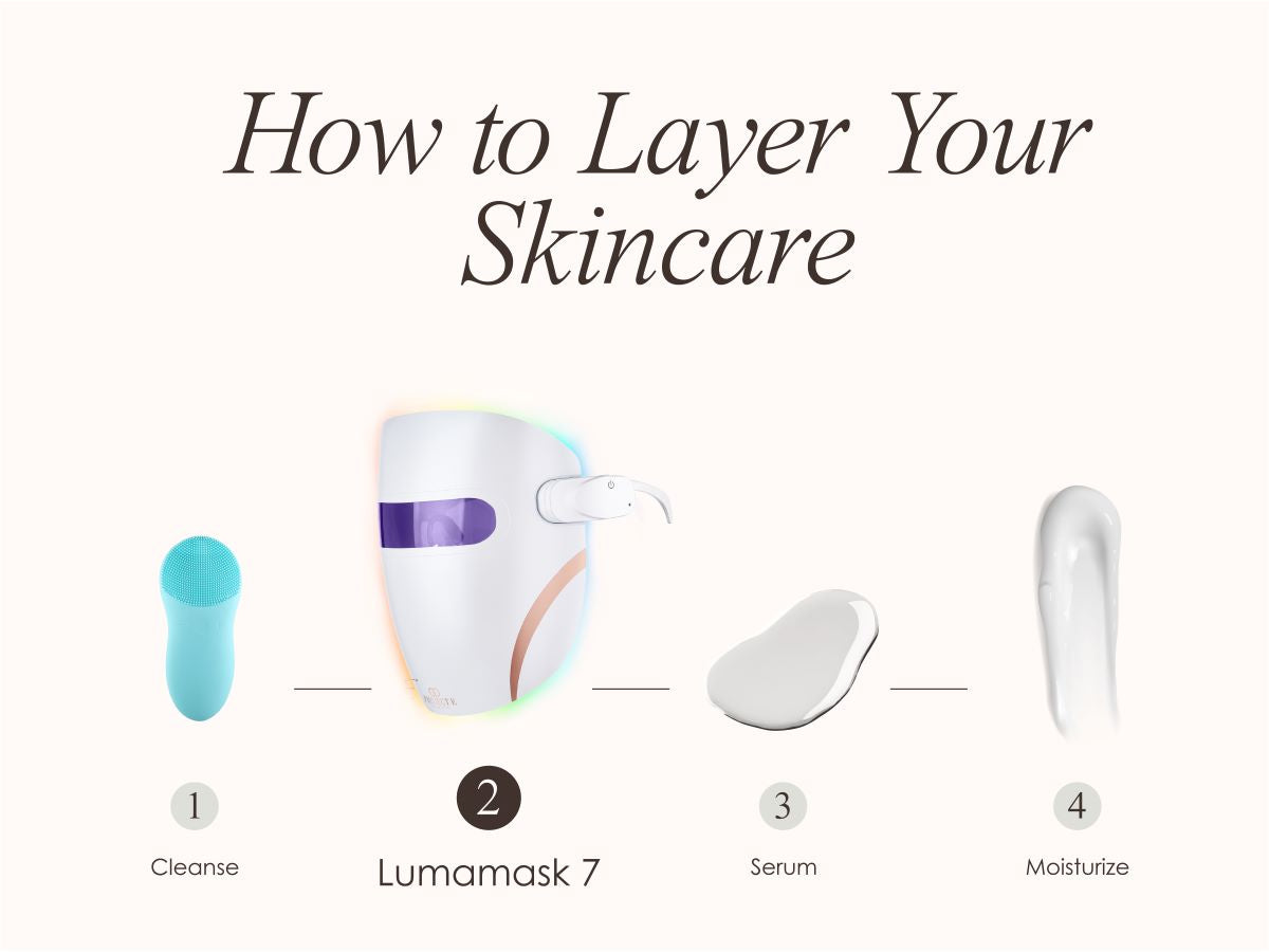 Use your Lumamask 7 on a freshly cleansed face. Follow up with your favorite serum. We recommend a hyaluronic acid serum for an ultimate hydration boost. For stronger actives like retinol and vitamin C it's best not to apply directly after treatment to prevent irritation
